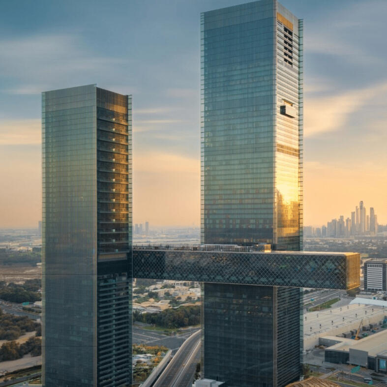 Iconic mixed-use twin towers with The Link skybridge; supported MEP construction and coordination for hospitality and residential zones.